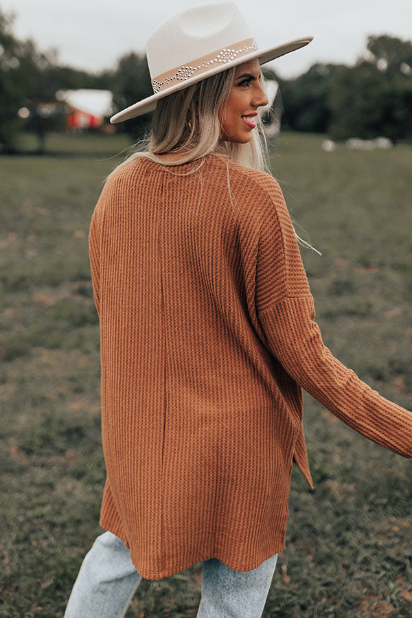 Put You First Waffle Knit Top In Camel Impressions Online Boutique